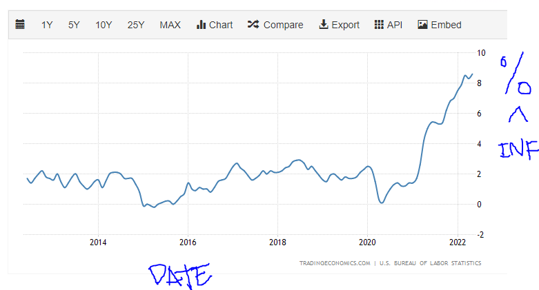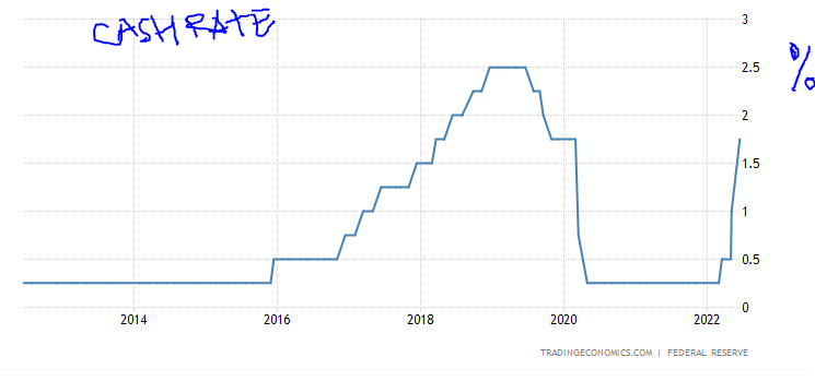 Below we can see the historical movement of inflation in the US, note how after 2020 we see a steep increase in inflation, increasing to the point of stupidity. We can also see from 2015 to 2018 was a high growth period for inflation, it would make sense to timeline feds cashrate throughout this period aswell.